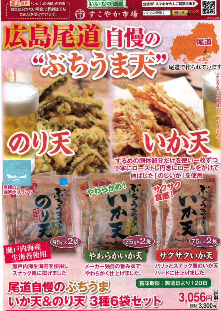 尾道自慢のぶちうま いか天&のり天 3種6袋セット